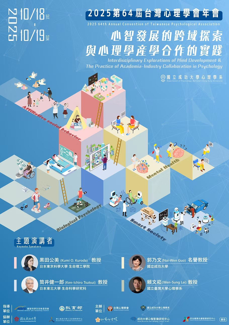 114年10月18(六)、19(日)第64屆台灣心理學會年會 心智發展的跨域探索與心理學產學合作的實踐